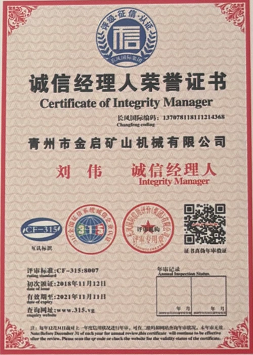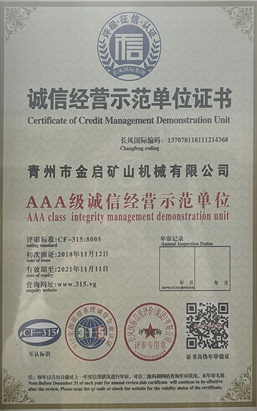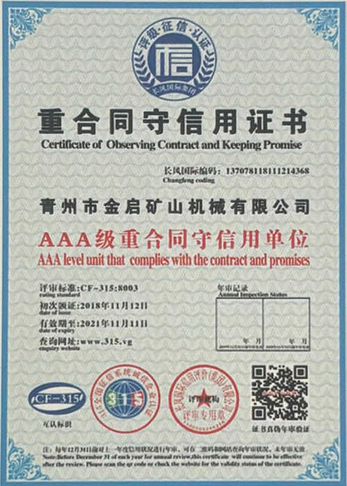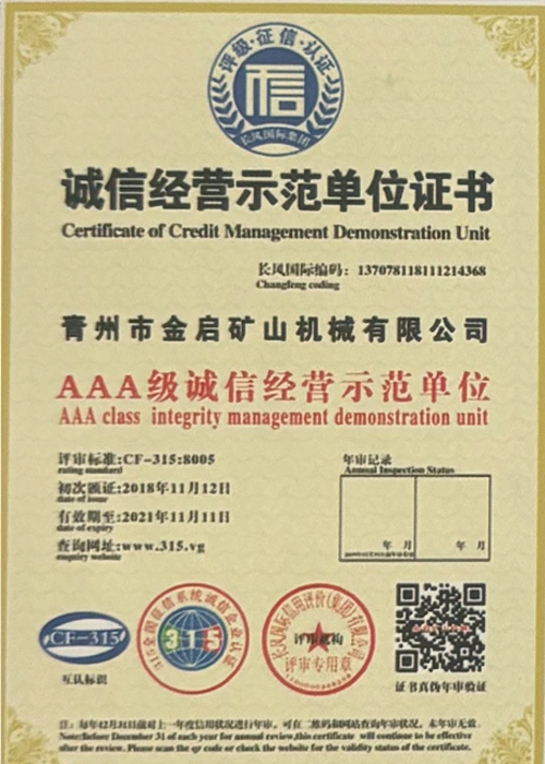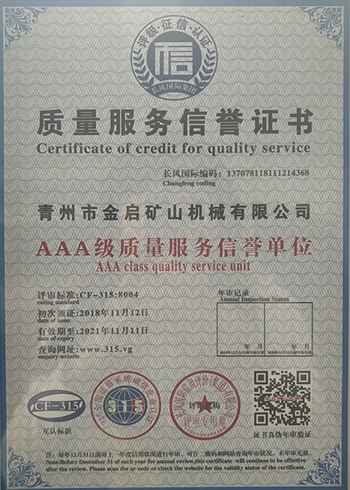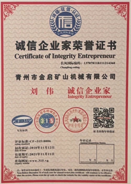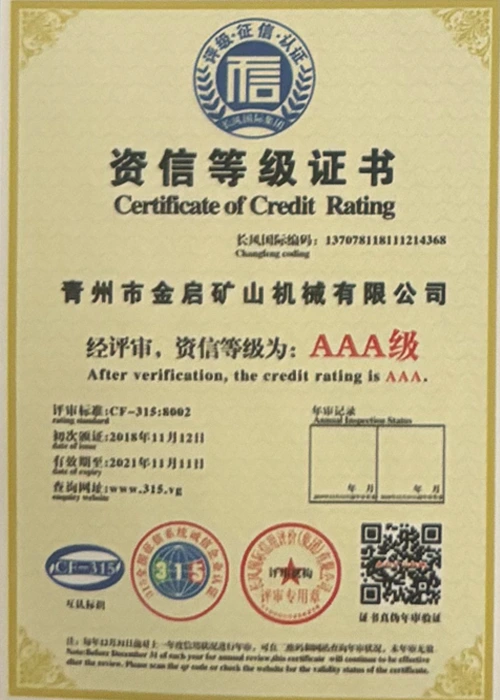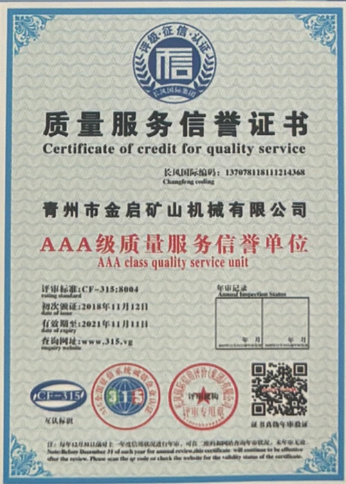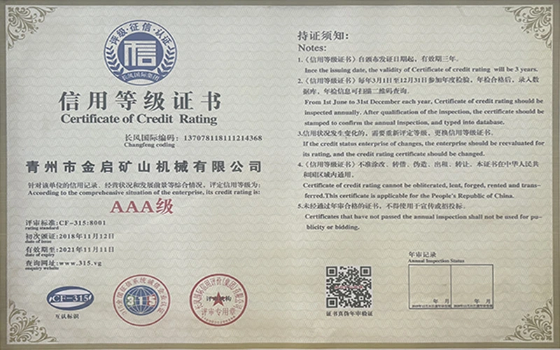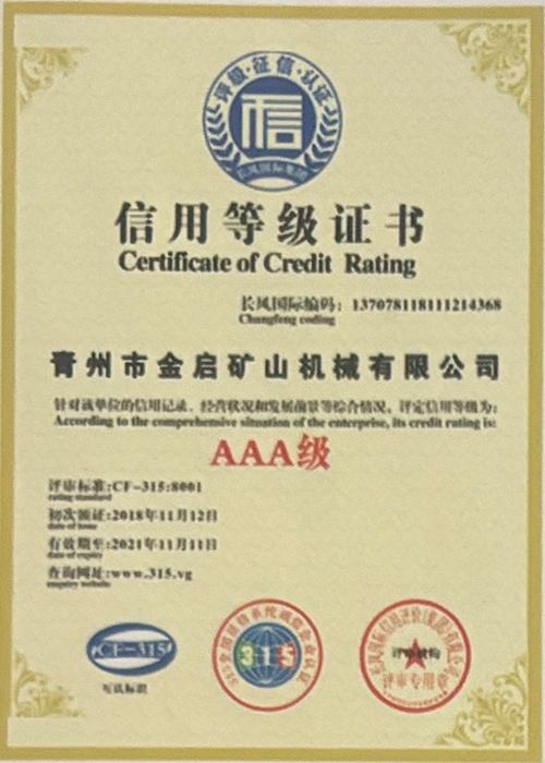 Mit jahrelanger, fundierter Erfahrung in der Branche, die sich auf strenge Qualitätskontrolle und kontinuierliche technologische Innovation stützt, hat das Unternehmen eine Reihe maßgeblicher Qualifikationen, Zertifizierungen und Patentzertifikate erhalten, darunter die Zertifizierung des ISO-Qualitätsmanagementsystems, die Zertifizierung der Sicherheit von Bergbauprodukten sowie mehrere Erfindungspatente und Gebrauchsmusterpatente für die Optimierung der Anlagenstruktur und die Modernisierung energiesparender Technologien, die eine fundierte technische Stärke und eine konforme Produktionsgarantie beweisen.
