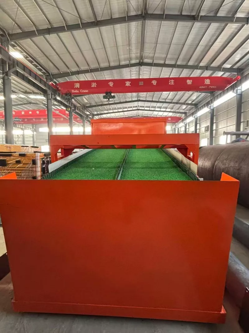 1. Die Erzaufschlämmung wird gleichmäßig auf der Oberfläche der Gold absorbierenden Matte verteilt. Schwere Mineralien (Gold) werden durch die Struktur der Gold absorbierenden Matte effektiv adsorbiert, während leichte Verunreinigungen automatisch mit dem Wasserstrom ausgetragen werden.